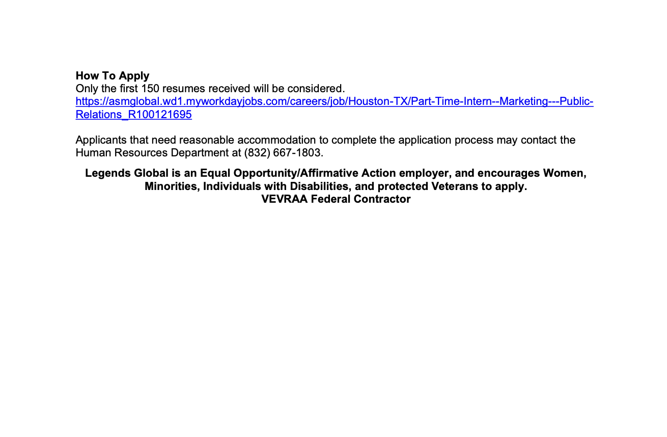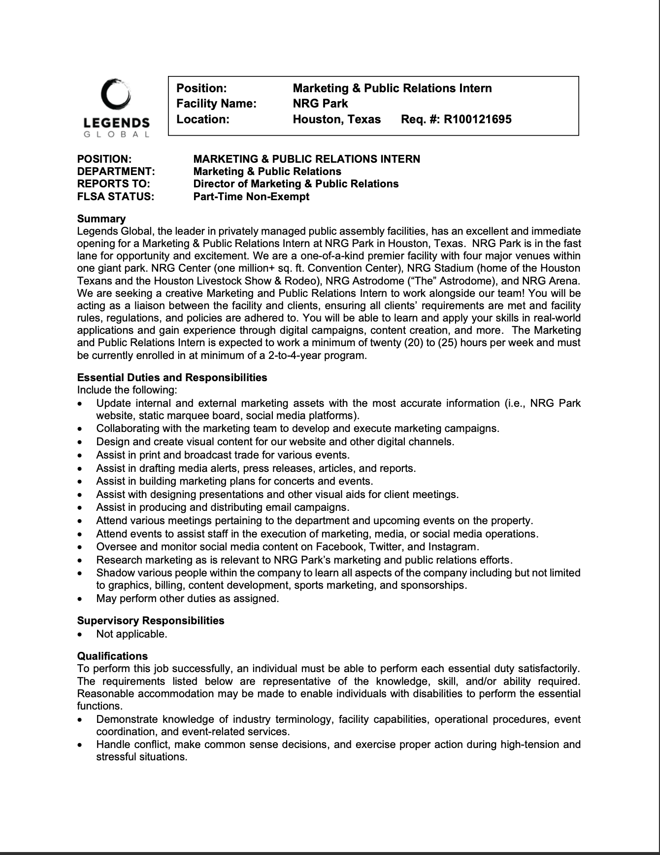 Marketing and Public Relations Intern - Legends Global Apr 6 Written By Valenti School of Communication InternshipPart-TimeIn PersonPublic RelationsInterpersonal CommunicationOrganizational/Corporate CommunicationMarketing Valenti School of Communication https://valentii.uh.edu